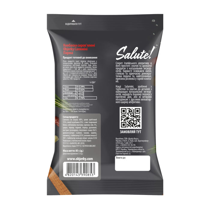 SALAMINI – маленькі короткі міні-ковбаски. Традиційні м'ясні снеки для середземноморського регіону Італії, Франції, Іспанії і навіть Туреччини, часто зустрічаються у традиційних м'ясних лавках. Закуска до аперитиву, пива і просто смачний перекус. «Комплімент» до даного продукту - грісіні, оливки та тверді сорти сиру.